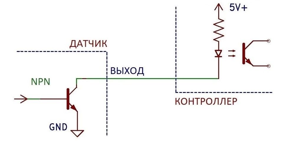- Когда датчик активен, его транзистор замыкает линию на землю → контроллер читает «0».