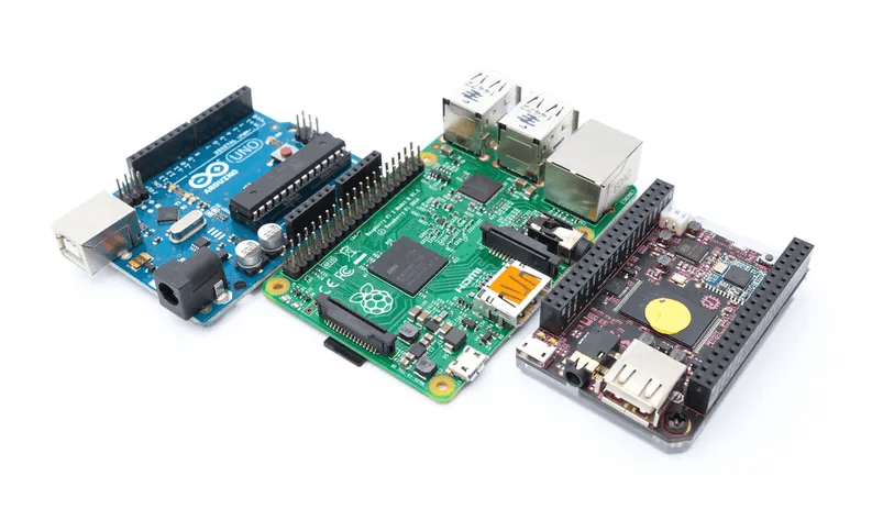 - Одноплатные компьютеры — сочетают мощь ПК с функциями контроллера: