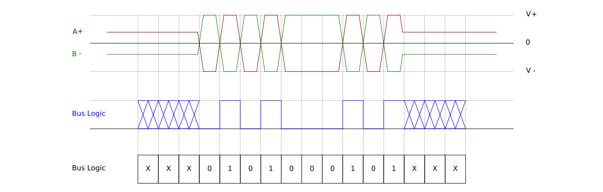 Представьте старинные весы с двумя чашами: Левая чаша — линия A Правая чаша — линия B Когда на левую кладут груз, она опускается, а правая поднимается. Важна не высота каждой чаши, а разница между ними. Если кто-то надавит на всю конструкцию (электромагнитная помеха), обе чаши опустятся одинаково — но разность останется прежней. В RS-485: Логический «0»: A выше B минимум на 200 мВ Логическая «1»: B выше A минимум на 200 мВ Такой подход обеспечивает высокую помехоустойчивость даже в самых сложных условиях. Нуль в данном случае — это не отсутствие сигнала, а конкретное логическое состояние, определяемое разностью потенциалов.