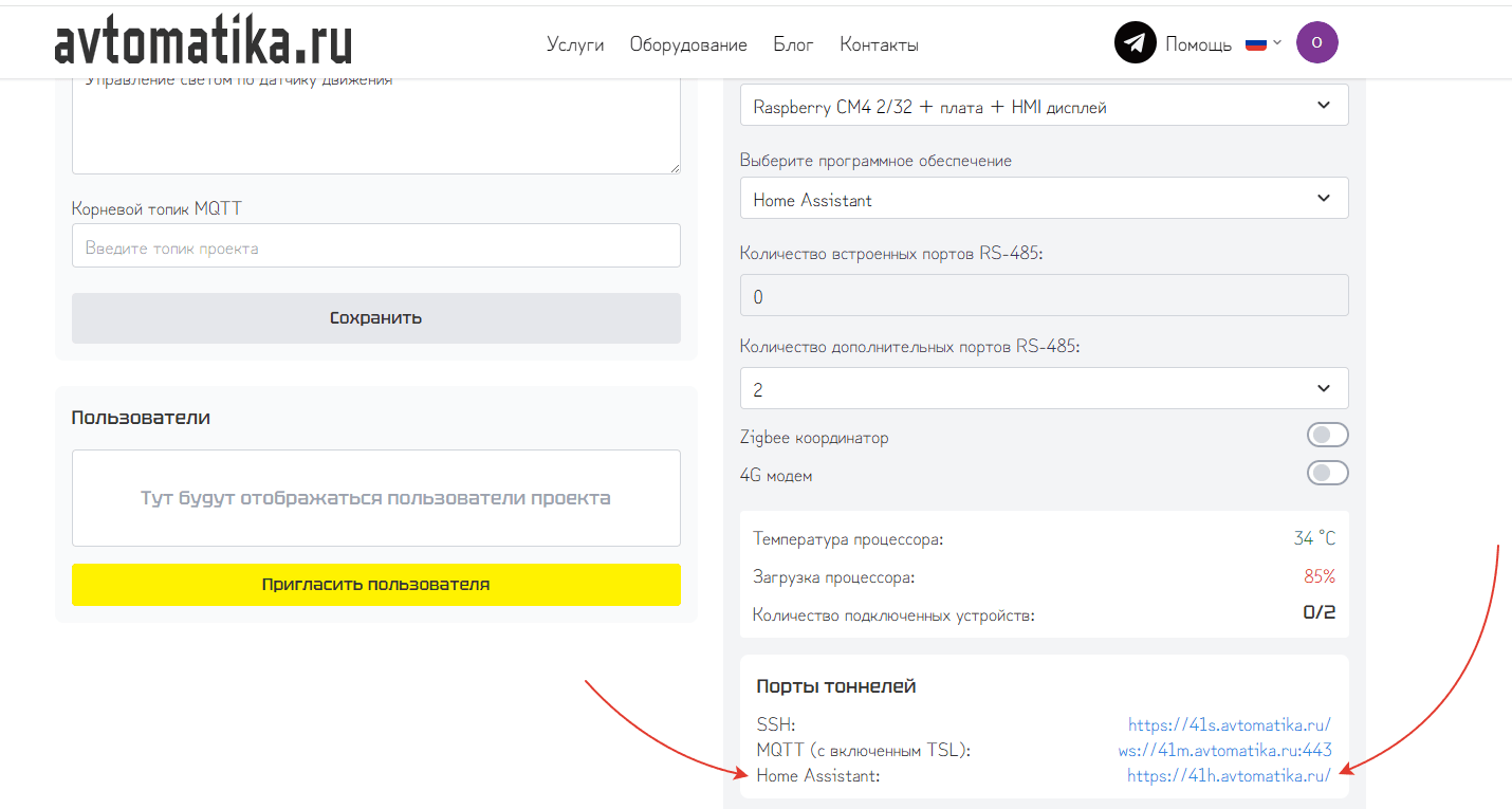 Покажем, что канал с наименованием «Детектор движения» и канал с наименованием «Свет в комнате» появятся в Home Assistant именно с такими наименованиями. Перейдем во вкладку «Общие сведения». Видим, что контроллер подключен к проекту. Переходим через порты тоннелей в Home Assistant.