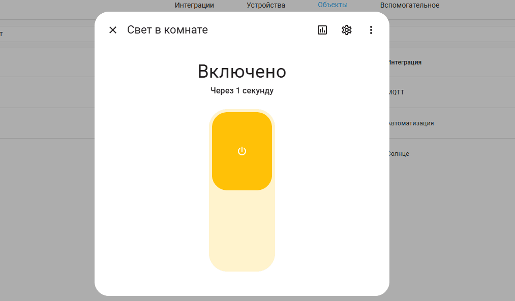 Мы даже можем включить и выключить реле, которое соответствует этому информационному каналу. Нужно кликнуть мышкой на строчке «Свет в комнате» с иконкой переключателя. В открывшемся диалоге при клике мышкой реле будет щелкать.